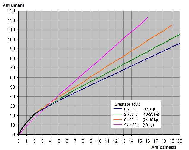 Aşadar, deşi un câine de talie mică este mai "bătrân" decât un câine mare la vârsta de doi ani, atunci când animalul de talie mică are vârsta de cinci ani el este de fapt mai "tânăr" decât exemplarele din rasele mari.